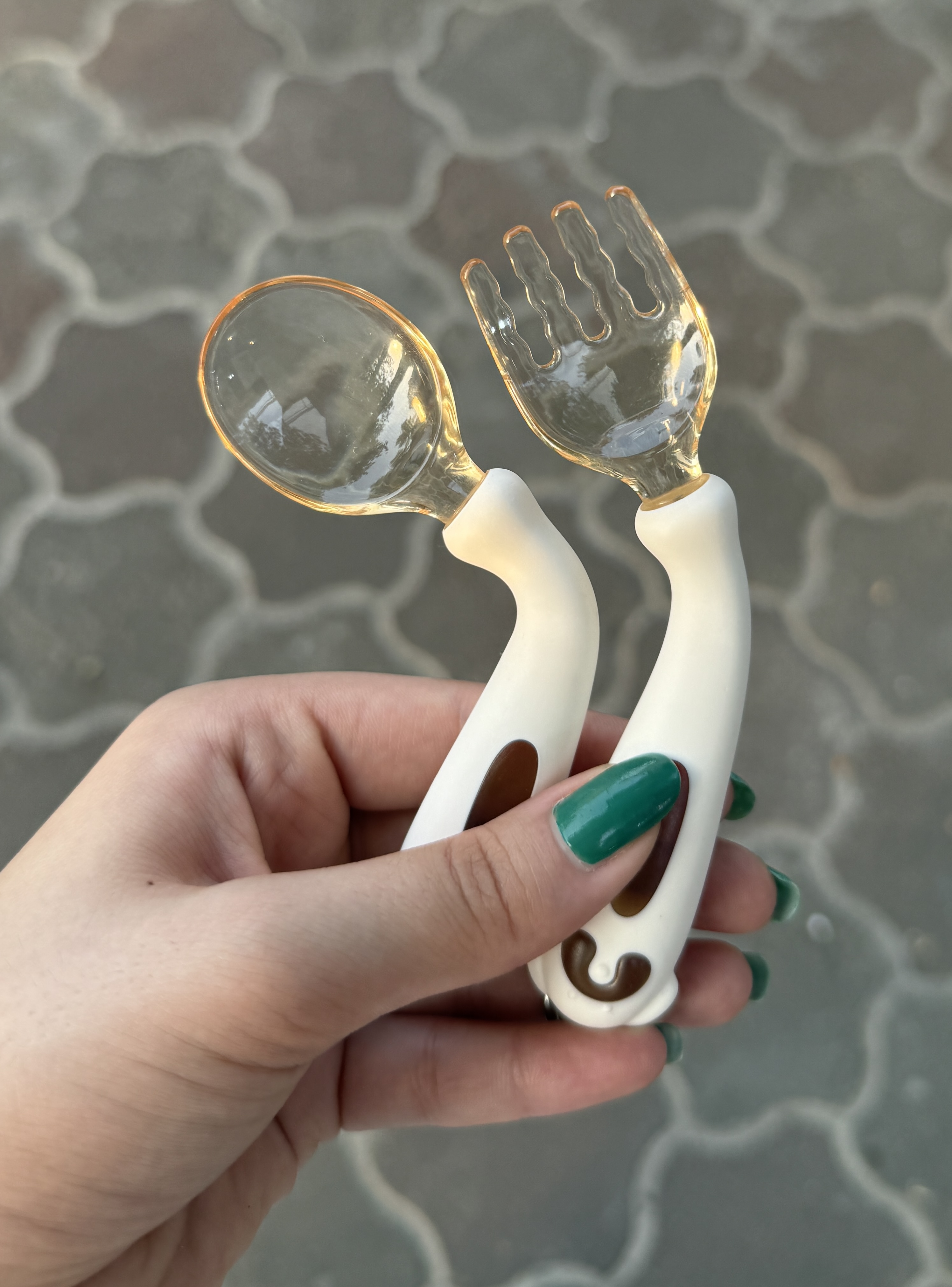 ست قاشق و چنگال سلیکونی مخصوص نوزادان طراحی شده تا غذا خوردن برای کودک هم راحتتر و هم ایمنتر باشد. جنس نرم و انعطافپذیر آن از سلیکون مرغوب و ضد حساسیت ساخته شده و به لثهها و دندانهای در حال رشد آسیبی نمیزند. دستههای ارگونومیک نیز به کودک کمک میکنند تا بهراحتی خودش غذا خوردن را یاد بگیرد.